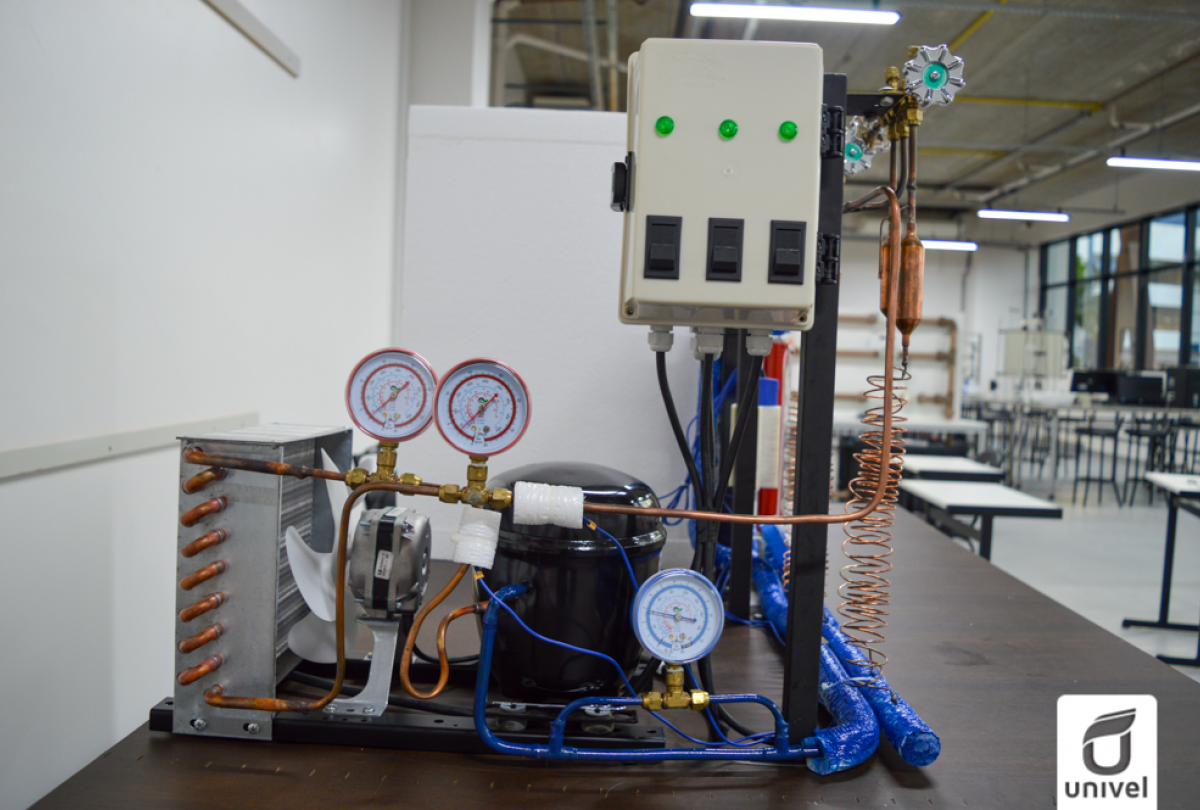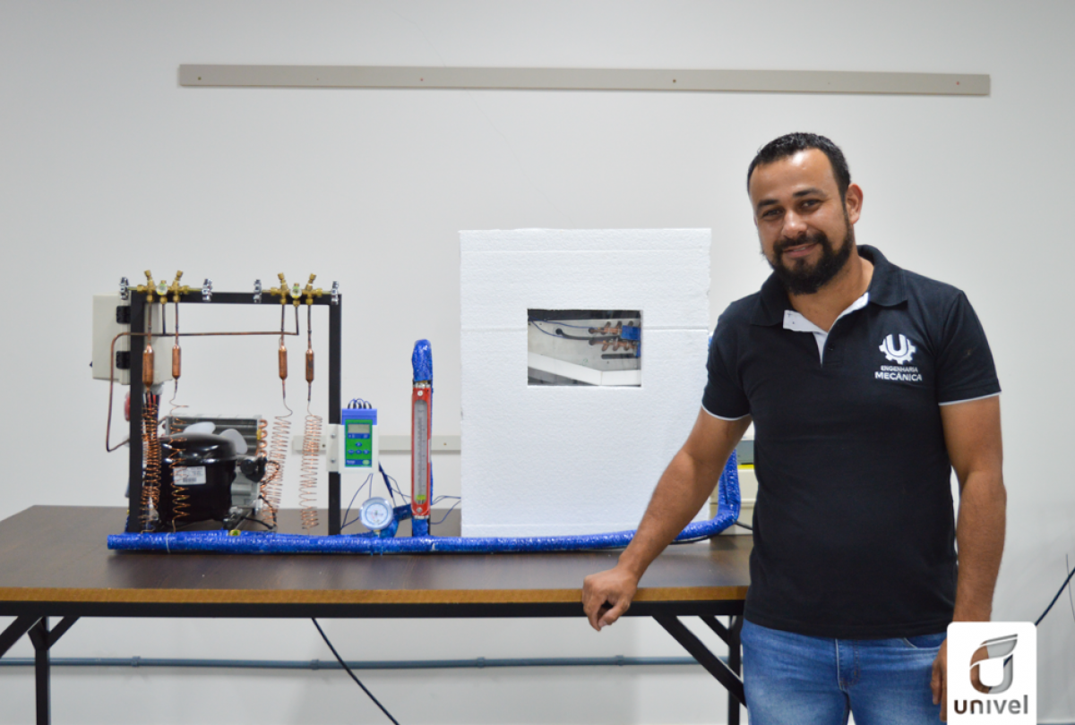 Acadêmico da 1° turma de Engenharia Mecânica da Univel desenvolve bancada didática para estudo do ciclo de refrigeração