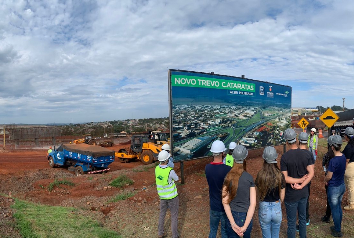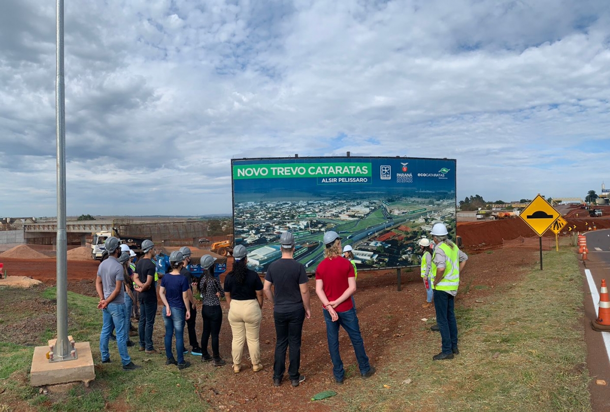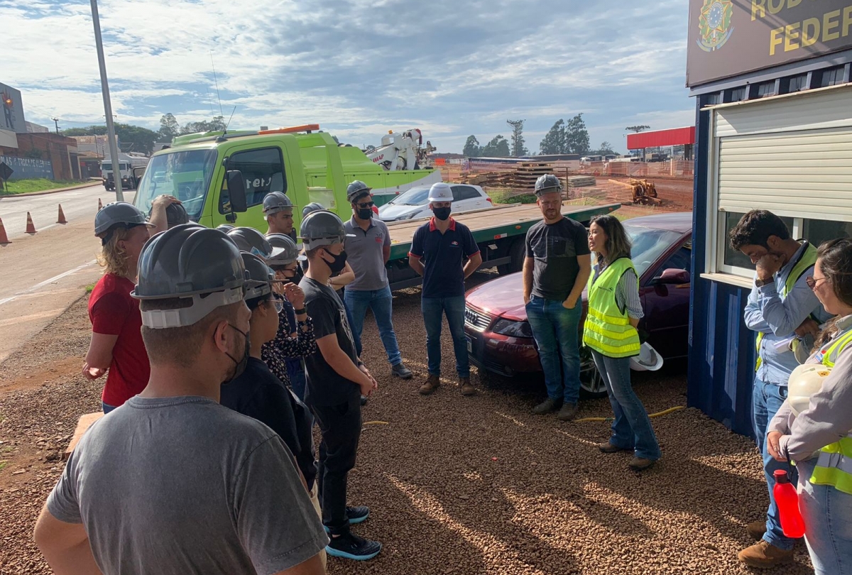 Acadêmicos do curso de Engenharia Civil da Univel participam de visita técnica na obra do Trevo Cataratas