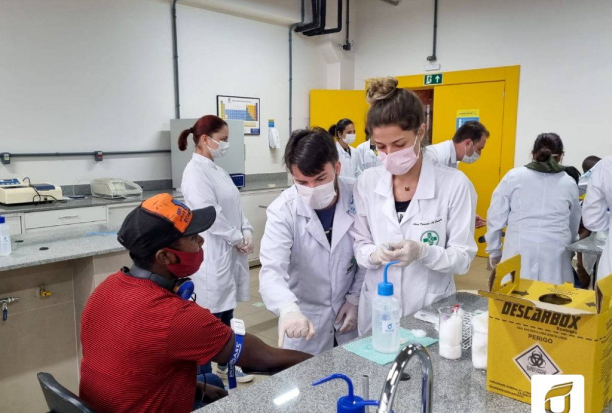 O projeto de extensão “Saúde do Imigrante” envolveu 4 disciplinas do 4º período de Biomedicina, hematologia clínica, parasitologia clínica, imunologia clínica e citopatologia e uroanálise. Cada professor ficou responsável por realizar determinados exames laboratoriais com os alunos.