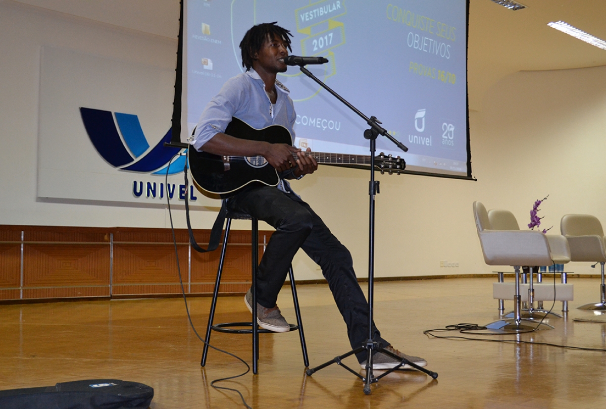 Começou nesta terça-feira (8), segue até sexta-feira (11), a Semana Acadêmica de Artes e Pedagogia da Univel que tem como tema "A arte e a criança no contexto escolar". O evento de abertura aconteceu no Auditório da Instituição e contou com uma apresentação cultural com o professor e músico, Jean Raimund Dere, que é Haitiano e falou um pouco sobre a cultura, culinária e costumes do seu país e cantou algumas canções em inglês e na sua língua, encantando os presentes.