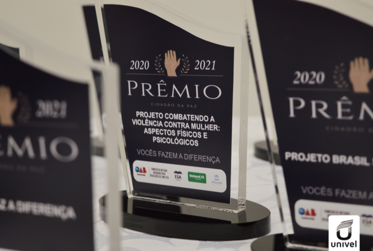 Na última sexta-feira (17), a Ordem dos Advogados - Subseção de Cascavel, por meio da Comissão de Métodos  Alternativos de Resolução de Conflitos, realizou a 1° Edição do Prêmio Cidadão da Paz, com objetivo de reconhecer o empenho de pessoas civis, empresas e entidades que tenham se destacado na ajuda ao próximo e na propagação da paz em nosso município. O projeto Combate à Violência Contra Mulher: Aspectos Físicos e Psicológicos do Centro Universitário de Cascavel - Univel, foi premiado na categoria Educar.