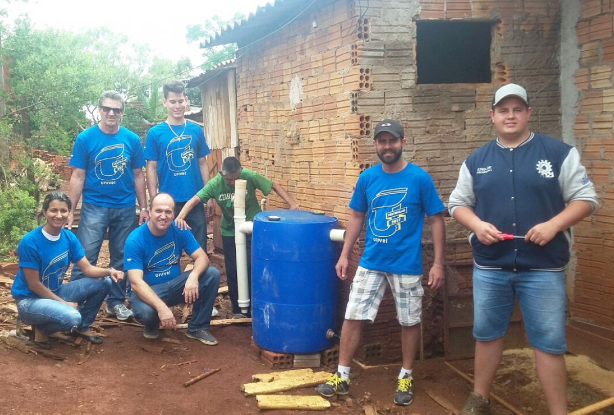 Duas famílias carentes foram escolhidas para receber as cisternas, gratuitamente. Uma foi selecionada dentre uma relação que havia participado de um projeto de catadores de reciclados da Univel. A outra foi escolhida pelos membros do projeto.