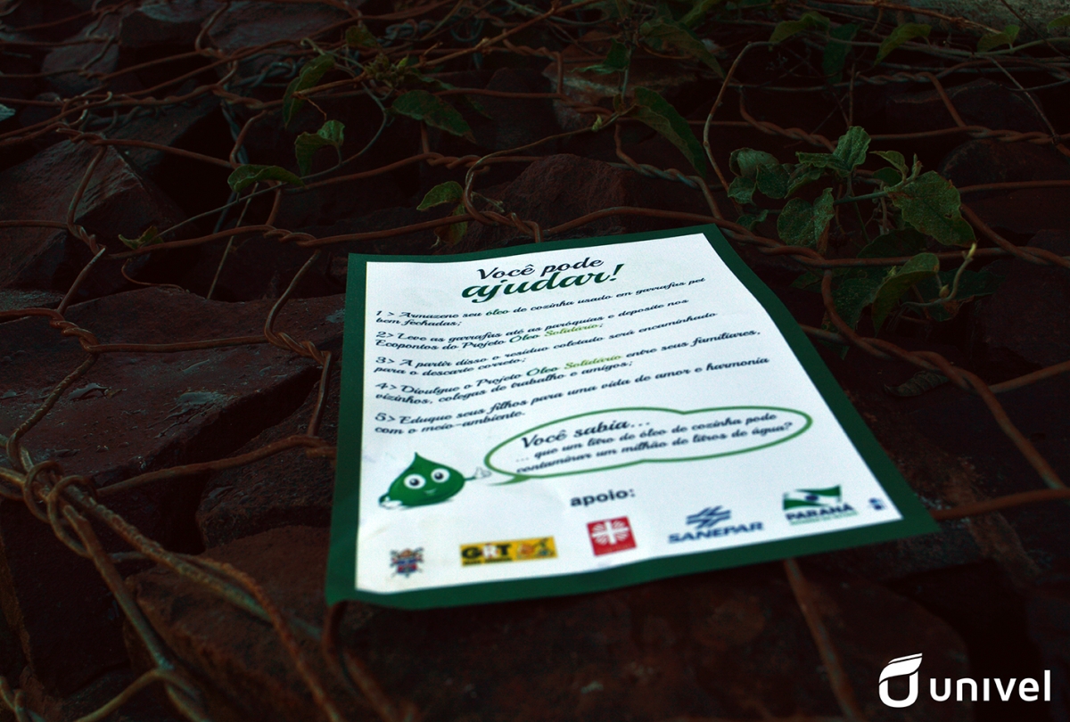 Também foram entregues sacos de ráfia do programa Coleta Legal para a reciclagem, panfletos sobre o descarte correto do óleo de cozinha, plantio de mudas nativas e frutíferas, conscientização sobre a dengue e orientação para a comunidade sobre os serviços prestados pelo Núcleo de Prática Jurídica da Univel.
