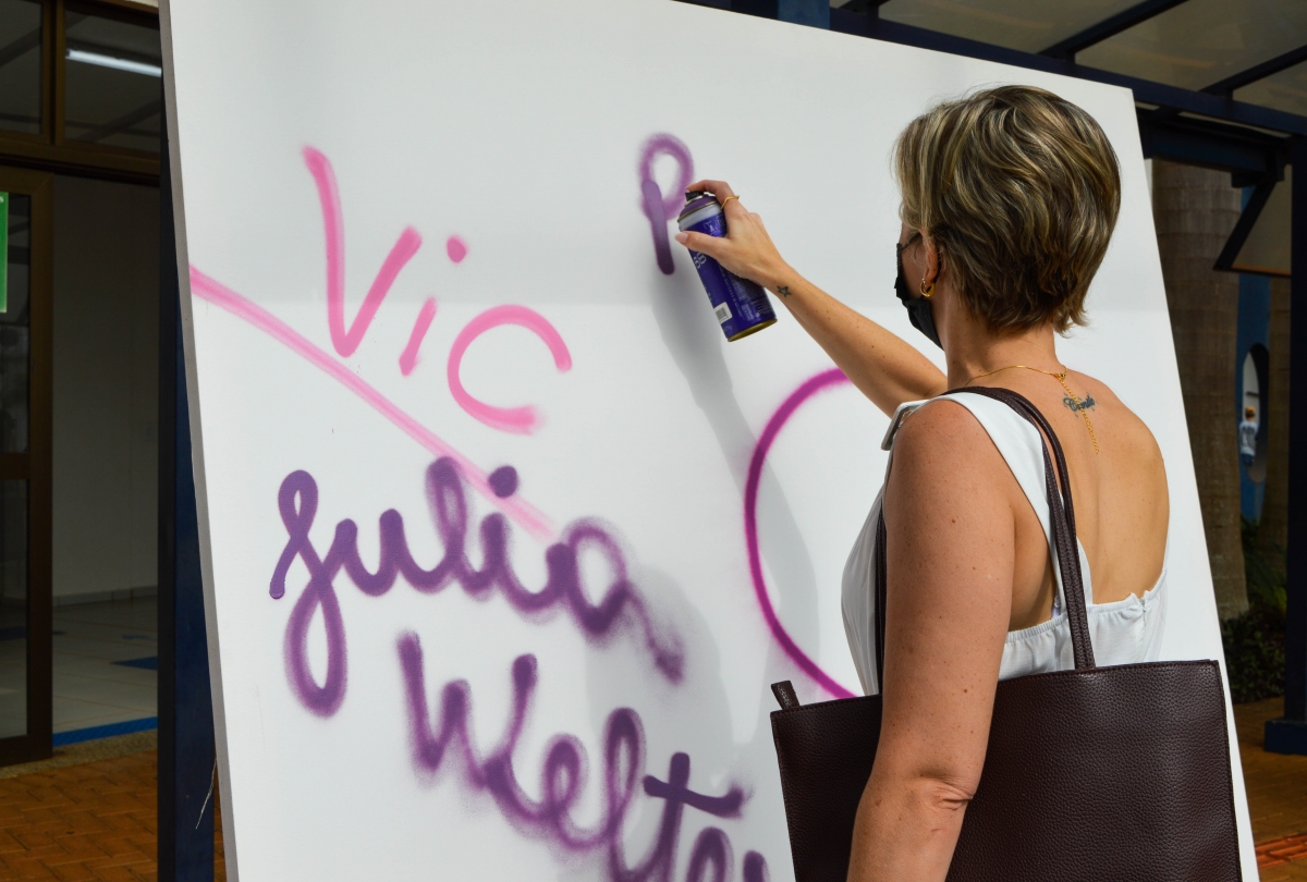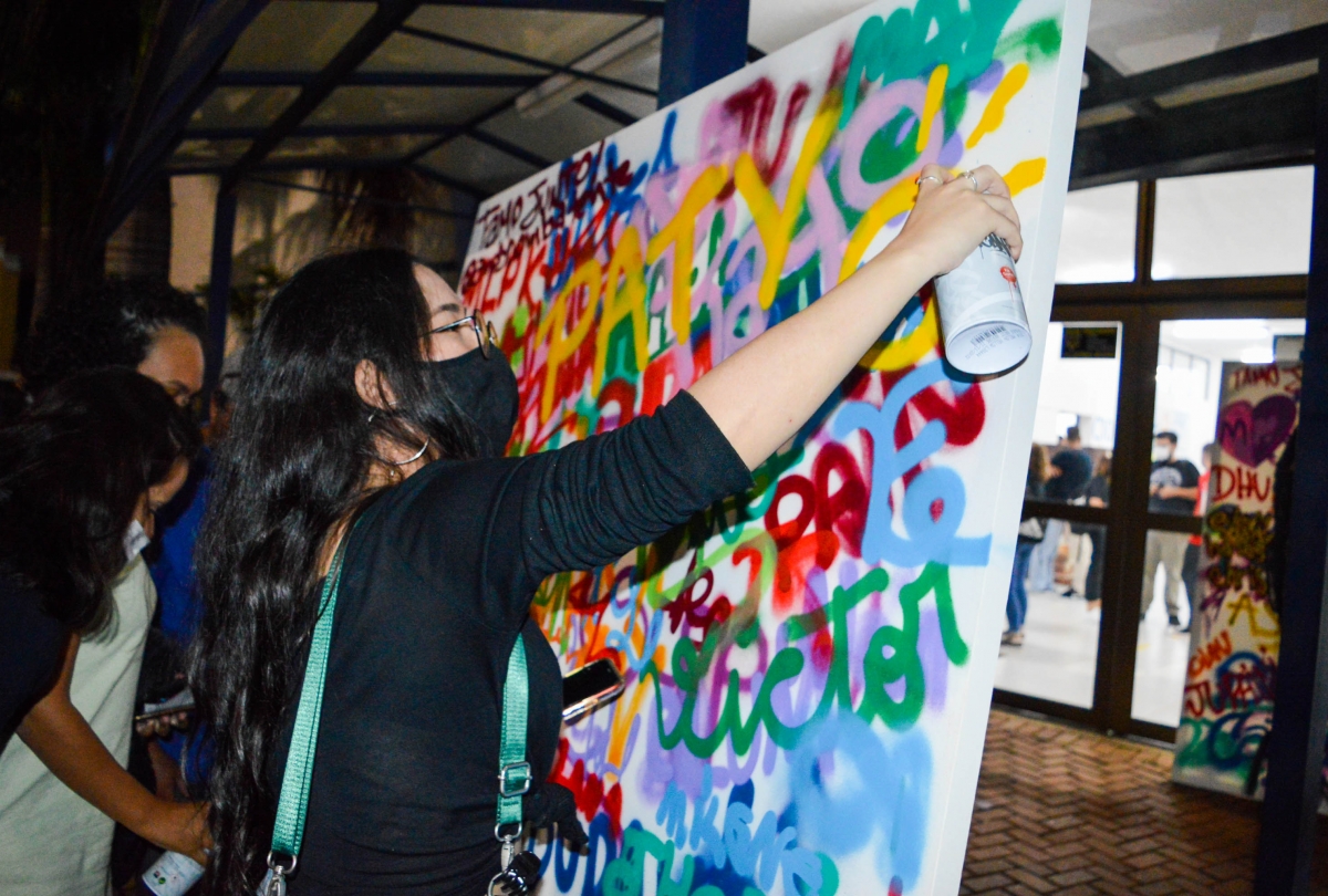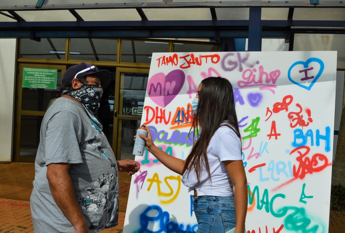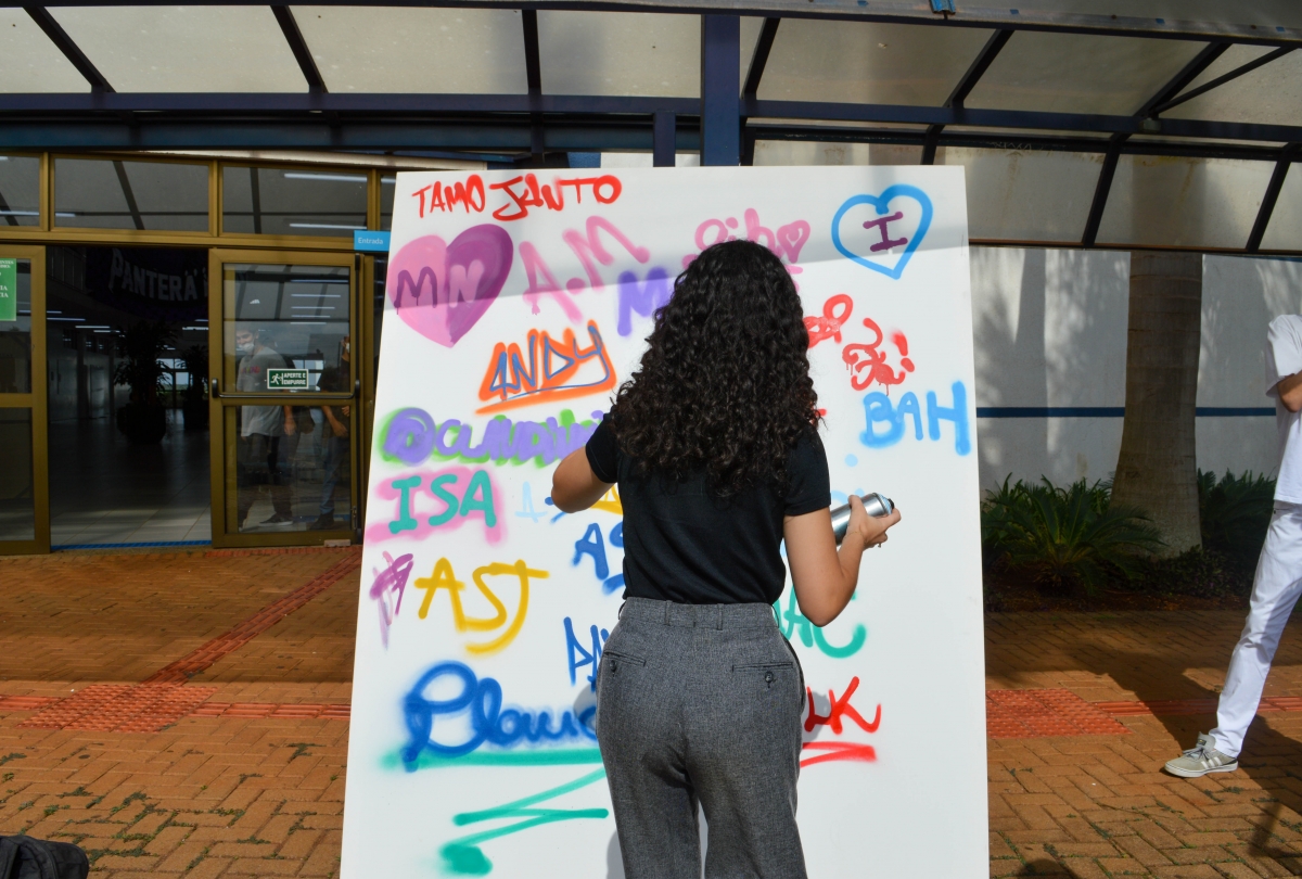 Em parceria com o artista plástico e grafiteiro Anderson Marques Silva, representante da Central Única das Favelas de Cascavel, duas telas foram expostas para que os alunos pudessem deixar suas marcas através do grafite. Para o grafiteiro, mais conhecido como Andy Combatente, a ação foi simbólica, um momento importante de união e de propagação da arte. “Agradeço a oportunidade de estar na Univel recepcionando os alunos com a arte do grafite, onde todos puderam de alguma forma deixar um pouquinho de si na tela. Foi bastante gratificante ver a alegria do pessoal, falando “grafite primeiro dia de aula, que legal” “nunca grafitei antes”, para isso a gente luta tanto pelo reconhecimento e propagação da nossa arte, o grafite, foi incrível!”, declara Anderson.