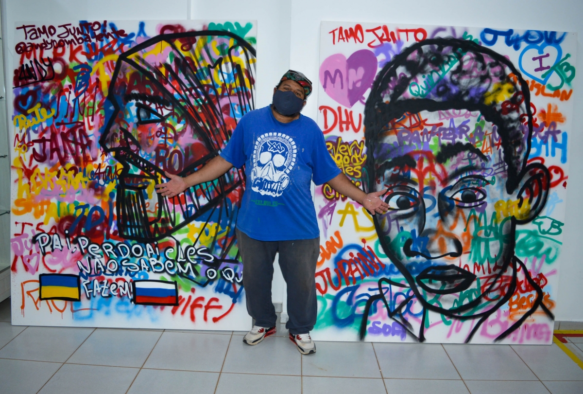 As obras criadas com as marcas dos alunos e com a finalização do grafiteiro Andy Combatente, levam consigo um discurso de aspecto social e humanitário. A primeira tela possui a silhueta do personagem Chris, do seriado americano “Everybody Hates Chris”, carregando consigo o debate racial e a luta contra o racismo. A segunda tela possui a silhueta de Jesus Cristo e a frase “Perdoai, eles não sabem o que fazem”, referindo-se a guerra atual entre Rússia e Ucrânia.